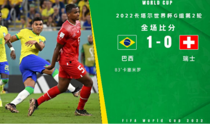 北京时间11月29日凌晨0时,世界杯小组赛G组第2轮,巴西对阵瑞士。上半场双方均无建树,维尼修斯错失一次有威胁的破门良机。巴西半场0-0战平瑞士。下半场,卡塞米罗打进绝杀球,最终巴西1-0击败瑞士,取得两连胜,提前小组出线。