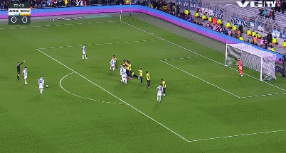 第67分钟,凯塞多分球到禁区右侧,瓦伦西亚接球后稍作调整,左脚的低射,皮球被门将按在身下。第69分钟,梅西带球到禁区弧顶处,左脚低射,皮球被没收。第71分钟,瓦伦西亚在前场左侧拿球,横敲到禁区中路,罗德里格斯跟进推射,射门力量有些小,皮球被门将按在身下。第77分钟,阿根廷换人调整,劳塔罗与麦卡利斯特下场,阿尔瓦雷斯与帕雷德斯出战。第78分钟,阿根廷获得禁区弧顶处的任意球机会,梅西任意球直接射门,皮球入网, 阿根廷1-0厄瓜多尔。