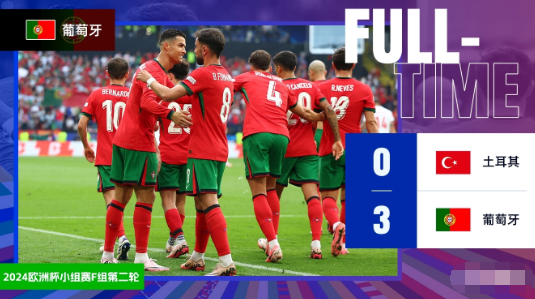 直播侠6月23日讯 北京时间6月23日凌晨0时整,2024年欧洲杯小组赛F组第2轮展开角逐,土耳其对阵葡萄牙。上半场B席首开记录,土耳其后防送逆天乌龙,莱奥连场假摔染黄,下半场C罗单刀无私助攻,成为欧洲杯历史并列助攻王,B费扩大比分。最终葡萄牙3-0完胜土耳其,葡萄牙小组赛两连胜提前锁定头名出线,土耳其1胜1负积3分位居第二。
